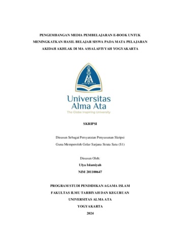 Islamiyah, Ulya (2025) PENGEMBANGAN MEDIA PEMBELAJARAN E-BOOK UNTUK MENINGKATKAN HASIL BELAJAR SISWA PADA MATA PELAJARANAKIDAH AKHLAK DI MA ASSALAFIYYAH YOGYAKARTA. Skripsi thesis, UNIVERSITAS ALMA ATA YOGYAKARTA.