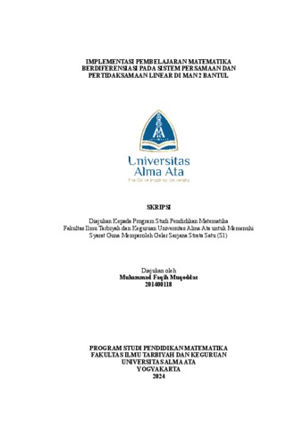 Muqoddas, Muhammad Faqih (2025) IMPLEMENTASI PEMBELAJARAN MATEMATIKA BERDIFERENSIASI PADA SISTEM PERSAMAAN DAN PERTIDAKSAMAAN LINEAR DI MAN 2 BANTUL. Skripsi thesis, UNIVERSITAS ALMA ATA YOGYAKARTA.