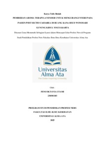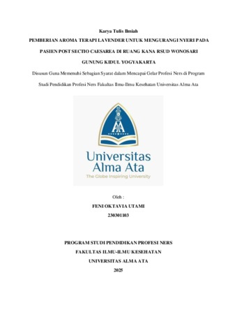 UTAMI, FENI OKTAVIA (2025) PEMBERIAN AROMA TERAPI LAVENDER UNTUK MENGURANGI NYERI PADA PASIEN POST SECTIO CAESAREA DI RUANG KANA RSUD WONOSARI GUNUNG KIDUL YOGYAKARTA. Karya Tulis Ilmiah thesis, UNIVERSITAS ALMA ATA YOGYAKARTA.