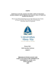 Sukirman, Safitri Ramdhani (2025) HUBUNGAN ANTARA ASUPAN VITAMIN A DENGAN KEJADIAN DOUBLE BURDEN MALNUTRITION PADA BALITA USIA 2-5 TAHUN DI KABUPATEN BANTUL. Skripsi thesis, UNIVERSITAS ALMA ATA YOGYAKARTA.