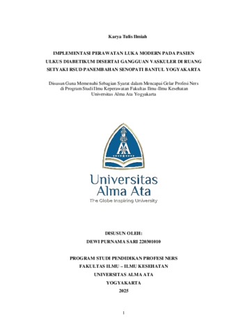 SARI, DEWI PURNAMA (2025) IMPLEMENTASI PERAWATAN LUKA MODERN PADA PASIEN ULKUS DIABETIKUM DISERTAI GANGGUAN VASKULER DI RUANG SETYAKI RSUD PANEMBAHAN SENOPATI BANTUL YOGYAKARTA. Karya Tulis Ilmiah thesis, UNIVERSITAS ALMA ATA YOGYAKARTA.