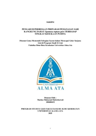 Sholechawati, Marina Maharani (2025) PENGARUH PERBEDAAN PREPARASI PEMANASAN SARI KANGKUNG DARAT (Ipomoea reptans poir) TERHADAP TINGKAT KESUKAAN PUDING. Skripsi thesis, UNIVERSITAS ALMA ATA.