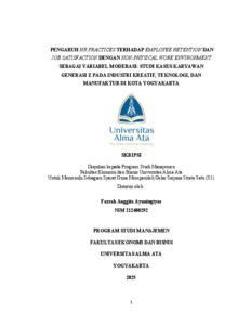 Ayuningtyas, Farrah Anggita (2025) PENGARUH HR PRACTICES TERHADAP EMPLOYEE RETENTION DAN JOB SATISFACTION DENGAN NON-PHYSICAL WORK ENVIRONMENT SEBAGAI VARIABEL MODERASI: STUDI KASUS KARYAWAN GENERASI Z PADA INDUSTRI KREATIF, TEKNOLOGI, DAN MANUFAKTUR DI KOTA YOGYAKARTA. Skripsi thesis, UNIVERSITAS ALMA ATA YOGYAKARTA.
