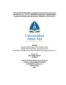 Septiana, Qissa Muthia (2025) PENGARUH PENGETAHUAN NASABAH, KUALITAS LAYANAN, DAN TEKNOLOGI SELF-SERVICE TERHADAP KEPUASAN NASABAH BANK SYARIAH INDONESIA (BSI) DI DAERAH ISTIMEWA YOGYAKARTA. Skripsi thesis, UNIVERSITAS ALMA ATA YOGYAKARTA.