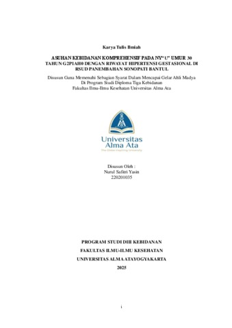 Yasin, Nurul Safitri (2025) ASUHAN KEBIDANAN KOMPREHENSIF PADA NY“U” UMUR 30 TAHUN G2P1AH0 DENGAN RIWAYAT HIPERTENSI GESTASIONAL DI RSUD PANEMBAHAN SONOPATI BANTUL. Karya Tulis Ilmiah thesis, UNIVERSITAS ALMA ATA.
