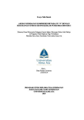 Setyorini, Dian Pratiwi (2025) ASUHAN KEBIDANAN KOMPREHENSIF PADA NY “N” DENGAN KEKURANGAN ENERGI KRONIS (KEK) DI PUSKESMAS IMOGIRI I. Karya Tulis Ilmiah thesis, UNIVERSITAS ALMA ATA.
