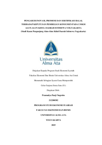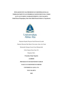 Nugroho, Pramudya Panji (2025) PENGARUH INOVASI, PROMOSI DAN SERTIFIKASI HALAL TERHADAP KEPUTUSAN PEMBELIAN KONSUMEN PADA UMKM ALUN-ALUN KIDUL DAERAH ISTIMEWA YOGYAKARTA (Studi Kasus Pengunjung Alun-Alun Kidul Daerah Istimewa Yogyakarta). Skripsi thesis, UNIVERSITAS ALMA ATA.