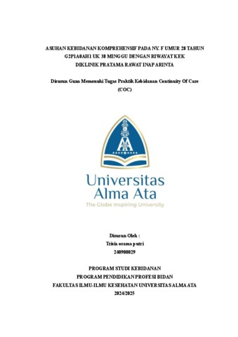 Putri, Trisia Osama (2025) ASUHAN KEBIDANAN KOMPREHENSIF PADA NY. F UMUR 28 TAHUN G2P1A0AH1 UK 38 MINGGU DENGAN RIWAYAT KEK DIKLINIK PRATAMA RAWAT INAP ARINTA. Karya Tulis Ilmiah thesis, UNIVERSITAS ALMA ATA.